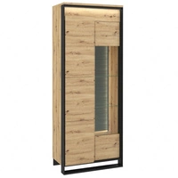 Witryna Quant 76 cm dąb artisan / czarny nowoczesny design witryna do salonu w stylu loftowym system otwierania drzwi push to open