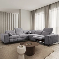 Narożnik z funkcją spania Luigi IV szary prawostronny elegancki narożnik do salonu wykonany z miękkiej tkaniny typu velvet