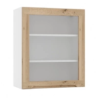 Szafka kuchenna wisząca Zova WS60 biały / dąb halifax szafka do kuchni z przeszkleniem odporna na uszkodzenia frezowany uchwyt