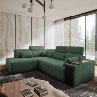 Narożnik z funkcją spania Tesalia IX zielony prawostronny nowoczesny design komfortowe przesuwane oparcie szuflada w boczku mebla