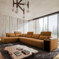 Narożnik z funkcją spania Tesalia XI miodowy lewostronny nowoczesny narożnik z komfortowym przesuwanym oparciem i pojemną szufladą