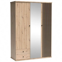 Szafa z lustrem Aspen 155 cm dąb artisan / czarne lamele nowoczesny design mebla drzwi szafy ozdobione lamelami