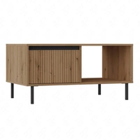 Stolik kawowy Osaka dąb evoke / czarny z szufladami elegancka konstrukcja wzmocniona metalowymi nogami w czarnym kolorze gustowny ryflowany front