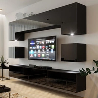Meblościanka Siana czarna / czarny połysk niezwykle stylowe meblościanka do salonu atrakcyjna pod względem wizualnym i funkcjonalnym