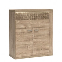 Komoda z szufladami Natural 102 cm dąb ribbeck stylowa komoda wysoka z ozdobną listwą z drewna sosnowego subtelne oświetlenie LED