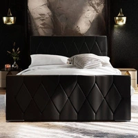Łóżko tapicerowane Sparks 180x200 czarne z pojemnikiem w nowoczesnym stylu z charakterystycznym wezgłowiem oraz z zanóżkiem