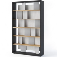 Regał Fitt 125 cm grafit / dąb / szary połysk nowoczesny regał do biura lub salonu bryła wyposażona w klimatyczne oświetlenie LED