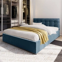 Łóżko tapicerowane Mona 160x200 błękitne z pojemnikiem w nowoczesnym skandynawskim stylu z pikowanym zagłówkiem z kryształkami
