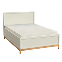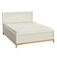 Łóżko tapicerowane Viamao 140x200 beżowe z pojemnikiem w nowoczesnym skandynawskim stylu z pikowanym wezgłowiem oraz zanóżkiem