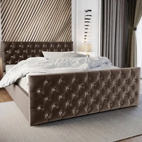 Łóżko tapicerowane Uberaba 160x200 jasny brąz z pojemnikiem w nowoczesnym skandynawskim stylu z pikowanym wezgłowiem i zanóżkiem z kryształkami