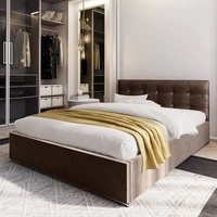 Łóżko tapicerowane Mona 160x200 jasny brąz z pojemnikiem w nowoczesnym skandynawskim stylu z pikowanym zagłówkiem z kryształkami