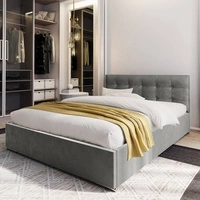 Łóżko tapicerowane Mona 140x200 szare z pojemnikiem w nowoczesnym skandynawskim stylu z pikowanym zagłówkiem z kryształkami