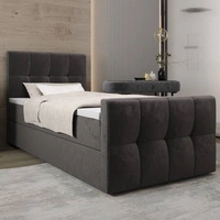 Łóżko kontynentalne Manhattan 90x200 grafitowe w nowoczesnym skandynawskim stylu z tapicerowanym zagłówkiem i zanóżkiem łóżko z pojemnikiem