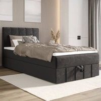 Łóżko kontynentalne Casey 90x200 grafitowe w nowoczesnym skandynawskim stylu z tapicerowanym zagłówkiem łóżko z pojemnikiem