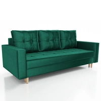 Kanapa rozkładana Selva butelkowa zieleń funkcjonalna sofa do salonu z pojemnikiem na pościel wykonana z miękkiej tkaniny typu velvet