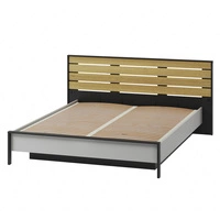 Łóżko Enna 160x200 cm beżowy / czarny / dąb natura komfortowe łóżko do sypialni z pojemnikiem zagłówek wzbogacony o oświetlenie LED