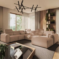 Narożnik z funkcją spania Cantare VIII łososiowy prawostronny gustowny narożnik z regulowanymi zagłówkami pojemniki na pościel