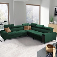 Narożnik z funkcją spania Alcamo zielony lewostronny elegancki i stylowy narożnik z dostawką praktyczna szuflada w boczku mebla