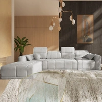 Narożnik z funkcją spania Cetara II kremowy prawostronny stylowy design przesuwane oparcia regulowane zagłówki i pojemnik na pościel