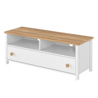 Szafka RTV Story 120 cm biały / dąb nash stylowa szafka pod telewizor idealna do pokoju młodzieżowego o subtelnym wykończeniu