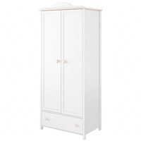 Szafa dwudrzwiowa Emily 80 cm biała niezwykle praktyczna szafa do pokoju dziecięcego z różowymi uchwytami w kształcie serca