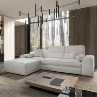 Narożnik z funkcją spania Tesalia VII beżowy lewostronny nowoczesny design komfortowe przesuwane oparcie szuflada w boczku mebla