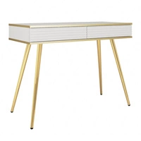 Konsola Luxury biała z szufladami elegancka toaletka z ryflowanymi frontami wysokie złote nogi korpus zwieńczony złotą listwą