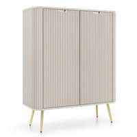 Komoda Zoya 103 cm beżowa elegancki design owalny kształt bryły osadzony na złotych metalowych nogach gustowny ryflowany front