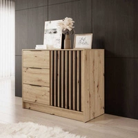 Komoda z szufladami Aspen 105 cm dąb artisan / czarne lamele nowoczesny design mebla drzwi komody ozdobione lamelami