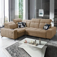 Narożnik z funkcją spania Buffalo II ciemny beżowy lewostronny funkcjonalny i stylowy narożnik rozkładany z regulowanymi zagłówkami