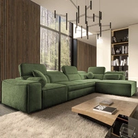 Narożnik z funkcją spania Viano VII zielony prawostronny modny i stylowy narożnik z regulowanymi zagłówkami ozdobne poduszki