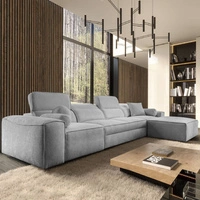 Narożnik z funkcją spania Viano X szary błękit lewostronny designerski narożnik do salonu w nowoczesnym stylu regulowane zagłówki