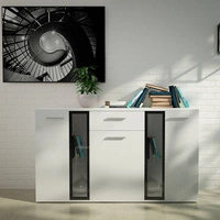 Komoda z szufladami Indiana 137 cm jesion jasny elegancka stylistyka komody z przeszkleniem ozdobna deska na froncie komody oświetlona LED