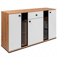 Komoda z szufladą Senja 140 cm dąb artisan / biała elegancki design ozdobny ryflowany front z metalowym uchwytem