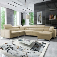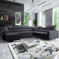 Narożnik z funkcją spania Kelly Sleek X czarny lewostronny niezwykle elegancki narożnik do salonu z regulowanymi zagłówkami