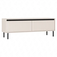 Szafka RTV Osaka 140 cm beżowa / czarna prosta bryła w modnej kolorystyce idealna do wnętrz w stylu japońskim gustowny ryflowany front
