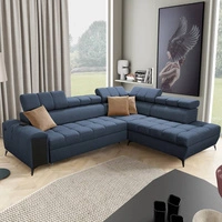 Narożnik z funkcją spania Bolmso VII niebieski prawostronny elegancki narożnik do salonu z szufladą i pojemnikiem na pościel
