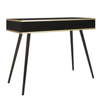 Konsola Luxury czarna z szufladami elegancka toaletka z ryflowanymi frontami wysokie czarne nogi korpus zwieńczony złotą listwą
