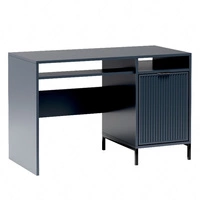 Biurko Linka 120 cm indigo doskonałe biurko do domowego biura czarne uchwyty krawędziowe dekoracyjne ryflowania na froncie mebla