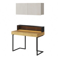 Biurko z nadstawką i szafką wiszącą Teen Flex 110 cm hikora naturalna / silk flou / raw steel nowoczesny design i duża funkcjonalność