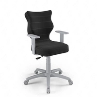 Krzesło do biurka Duo czarne dopasowane do wzrostu 159-188 cm profilowane siedzisko regulowane podłokietniki łatwo czyszcząca tkanina