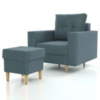 Fotel z podnóżkiem Vaso niebieski wygodny fotel do salonu w stylu skandynawskim miękkie siedzisko wysokie drewniane nogi