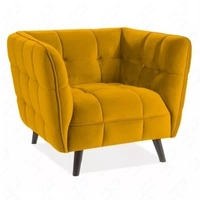 Fotel Castello żółty nowoczesny oraz funkcjonalny fotel z drewnianymi nogami komfortowy podczas wypoczynku