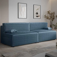 Kanapa rozkładana Brandon XL Bis niebieska nowoczesny design trójwymiarowa tkanina o wyrazistych prążkach pojemnik na pościel