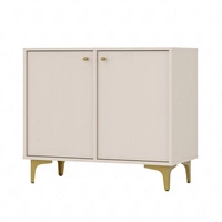 Komoda z szufladami Luxury 107 cm beżowa nowoczesny design komody do salonu korpus zwieńczony złotą listwą wysokie metalowe nogi