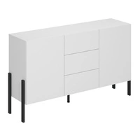 Komoda z szufladami Jukon 154 cm biała elegancka forma mebla w nowoczesnym stylu system otwierania push to open metalowe czarne nogi