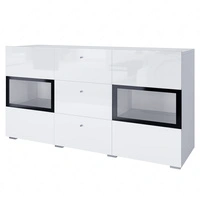 Komoda Adria 138 cm biały połysk / dąb grandson nowoczesny design mebla obrzeża komody wykończone specjalną okleiną ABS