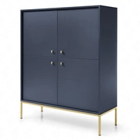 Komoda wysoka Mono 104 cm granatowa minimalistyczny design stylowy uchwyt prosta forma wzbogacona o metalowe złote elementy