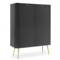 Komoda Zoya 103 cm czarna elegancki design owalny kształt bryły osadzony na złotych metalowych nogach gustowny ryflowany front