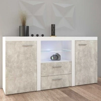Komoda z szufladami Rene 156 cm biała / jasny beton designerski i komfortowy mebel do nowoczesnych oraz funkcjonalnych wnętrz